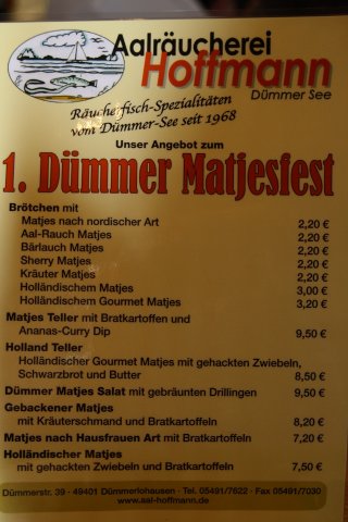 Am 19.06.2011 wurde bei der Aal- und Forellenräucherei Hoffmann in Dümmerlohausen das Matjesfest 2011 veranstaltet. Der Shanty-Chor Rehden e. V. hat mit seiner Liederauswahl zum Gelingen der Veranstaltung beigetragen. Wir, der Shanty-Chor Rehden e.V., möchten uns an dieser Stelle ausdrücklich bei Herrn Hoffmann und seinem Team für die sehr freundliche Aufnahme und die sehr gute Bewirtung bedanken. Wir kommen gerne wieder zur Fa. Hoffmann nach Dümmerlohausen.