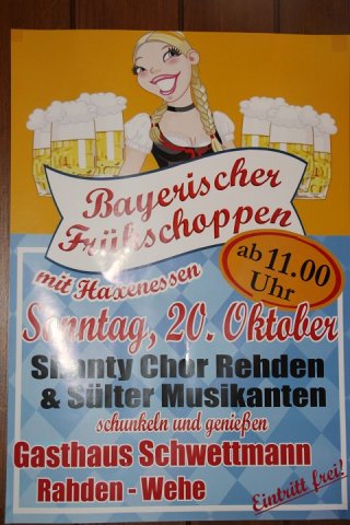 Am 20.10.2013 fand im Gasthaus Schwettmann in Rahden-Wehe der traditionelle Bayerische Frühschoppen statt.